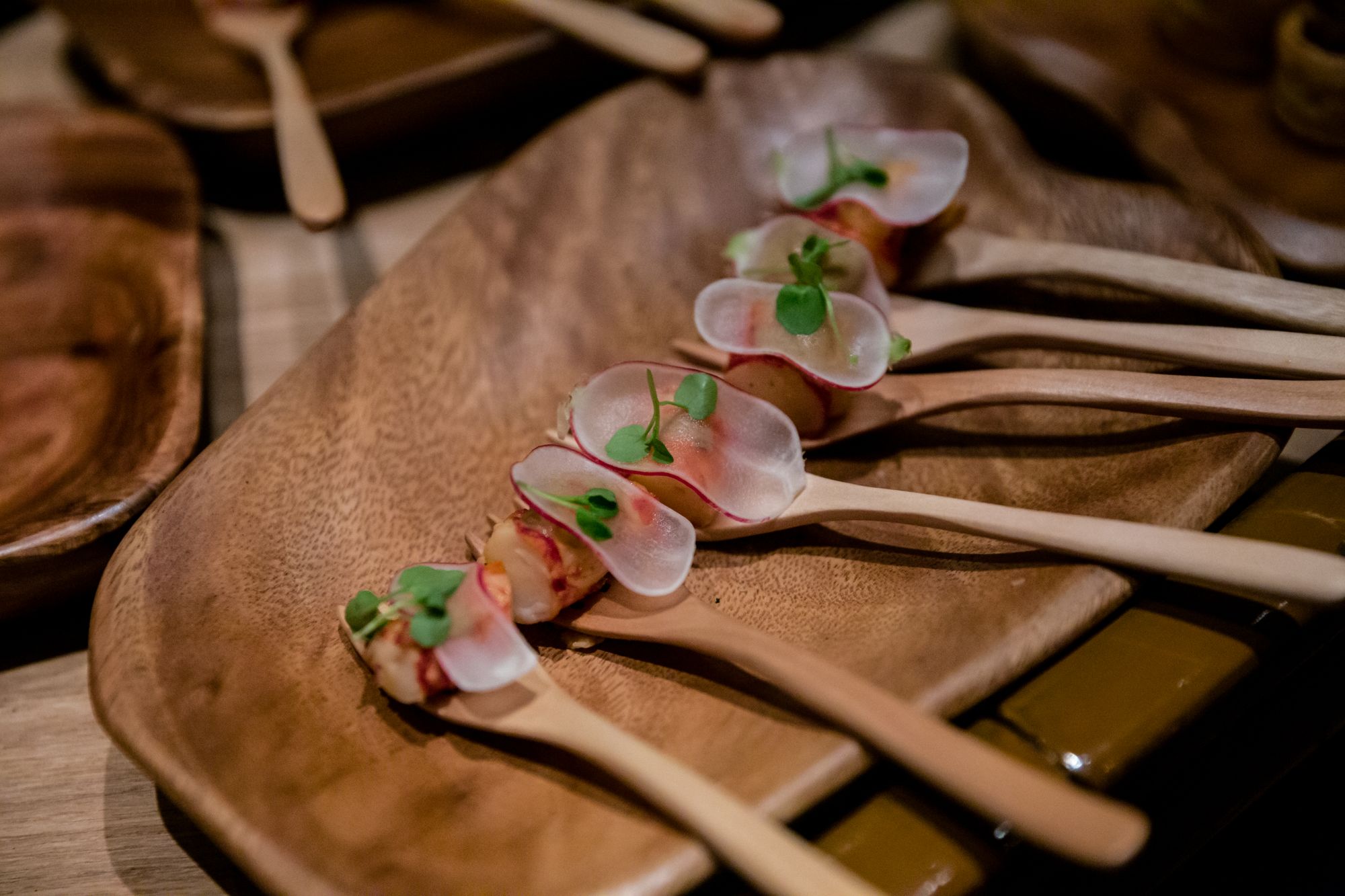 Food pairings included: Canapes of: Waffle, Kalamansi & Foie Gras - Tartare, Parmesan & Walnut - Scallop, Nori & Oyster - Ham Comte Monsieur - Korean Fried Crab - Red Prawn Tagine & Lemon - Leek, Potato Harissa.