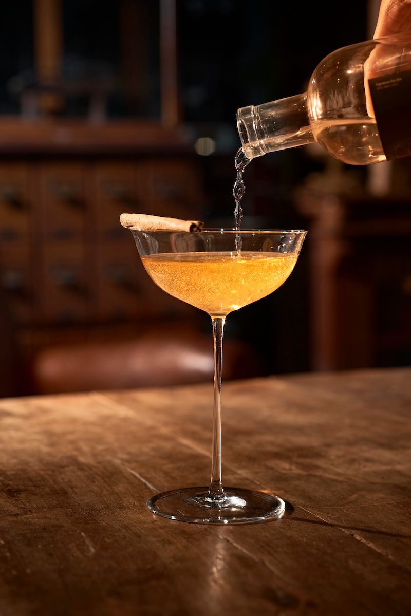 – Drop the tea leaves into the gin and let it sit for 20 minutes*