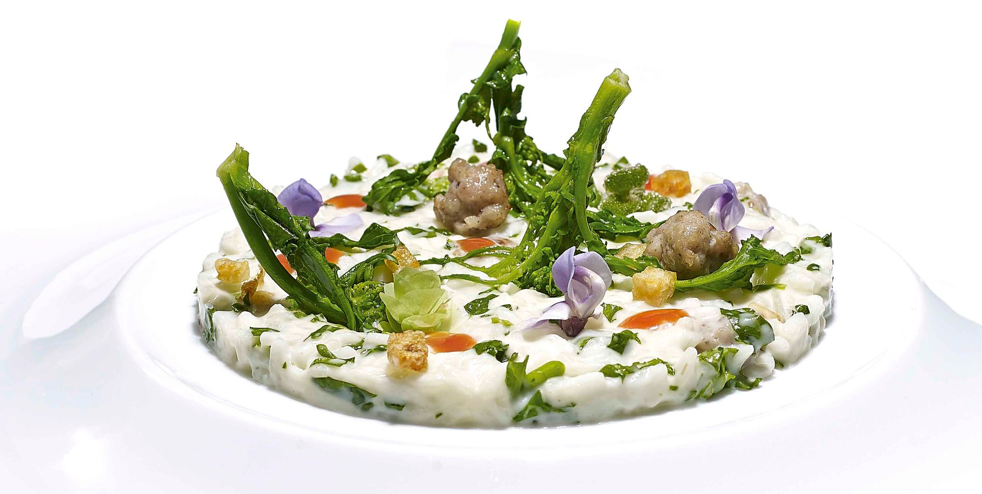 RISO AL LATTE OF MOZZARELLA, VEAL SAUSAGES AND CIME DI RAPA